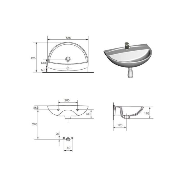 Prekės ženklas- Cersanit. Modelis- TK001-006. Ilgis- 58.5 cm. Plotis- 42.5 cm. Gylis- 17 cm. Svoris- 13 kg. Forma- Pusapvalė. Tinkamas patalpai- Vonia. Spalva- Balta. Medžiaga- Keramika. Skylė maišytuvui- Taip. Perbėgimo skylė- Taip. Montavimo tipas- Pakabinama, Pakabinama.