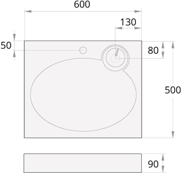 Praustuvė virš skalbyklės PAA CLARO MINI, 600×500 mm