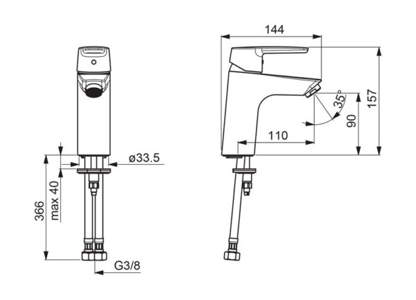 Prekės ženklas- Oras. Modelis- 3911F. Ilgis- 14.4 cm. Plotis- 3.4 cm. Svoris- 1.19 kg. Aukštis- 15.7 cm. Spalva- Chromo. Medžiaga- Žalvaris. Jungtis- 3/8 colio. Kasetė/maišymo sistema (cartridge)- 3.5 cm. Pralaidumas- 6 l/min. Rankenėlių skaičius- 1. Su dušo žarna- Ne. Ištraukiama galvutė- Ne. Lanksti galvutė- Ne. Su dušo galvute- Ne. Dugno vožtuvas komplekte- Ne. Garantija- 24 mėn. Papildoma informacija- CASCADE® – aeratoriaus srovė. Greito ir lengvo montavimo sistema. Vandens temperatūros ir maksimalaus srauto ribojimo funkcijos..