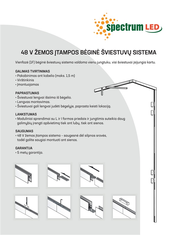 Prekės tipas- Bėgių tvirtinimo detalė. Modelis- -. Artikulas- WLD+40023. Tinkamas patalpai- Darbo kambarys, Prieškambaris, Miegamasis, Svetainė, Virtuvė, Valgomajam. Stilius- Modernus. Šviestuvo tipas- Lubų ir sienų. Montavimo tipas- Tvirtinamas prie lubų arba sienos. Lemputės lizdas- LED. Maksimali galia- 17 W. Maksimalus lemputės galingumas- 17 W. Su lempute(-ėmis) komplekte- Ne. Lempučių skaičius- 1. Apsaugos laipsnis (IP)- IP20. Privaloma garantija- 24 mėn. Su valdymo pulteliu- Ne. Įtampa- 48 – 48V. Prekės ženklas- Spectrum. Papildoma informacija- Bėgelių tvirtinimo elementas bėginei sistemai SYSTEM SHIFT 48V. Ilgis- 8 – 8cm. Plotis- 2.2 – 2.2cm. Aukštis- 0.4 – 0.4cm. Gaubto spalva- Nėra gaubto. Korpuso medžiaga- Aliuminis. Gaubto medžiaga- Nėra gaubto. Korpuso spalva- Juoda.
