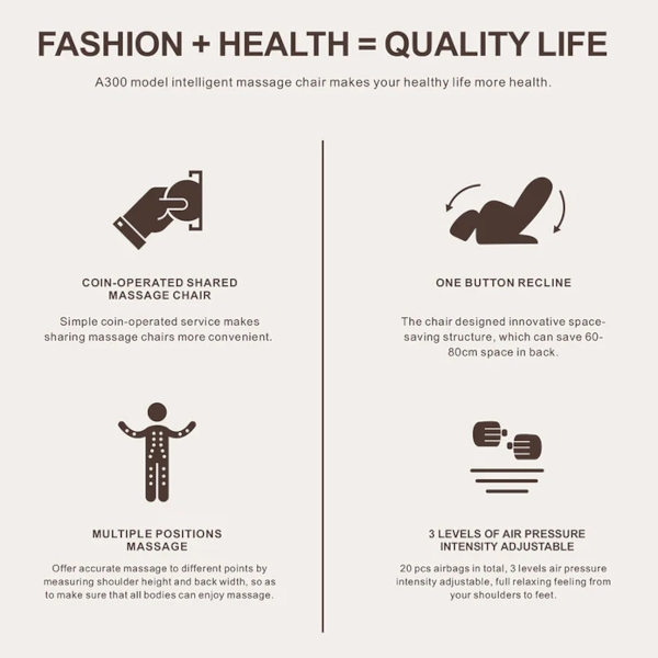 Ideal for business premises, waiting rooms, gyms or wellness corners – easy monetization of relaxation.