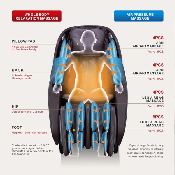 - Full Body – after a hard day (holistic massage with a professional 2D mechanism that relaxes the body from head to toe)