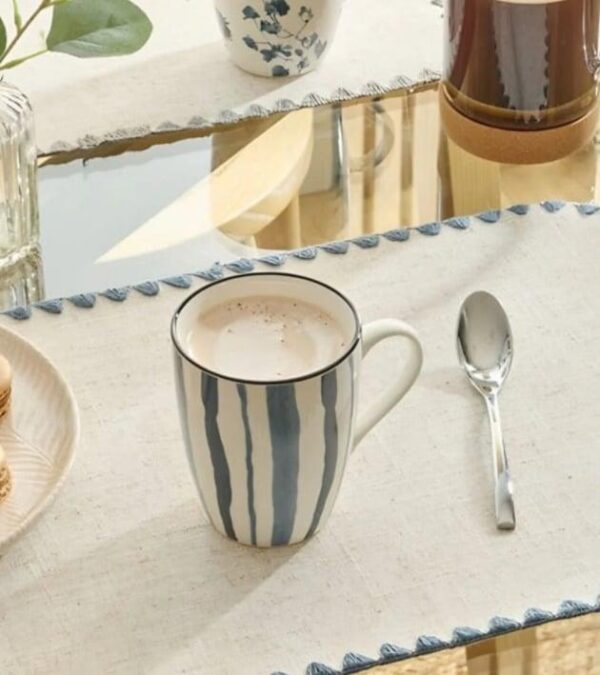 Prekės ženklas- -. Artikulas- 212120D. Aukštis- 10.1 cm. Skersmuo- 8.1 cm. Talpa- 0.310 l. Spalva- Mėlyna, Balta. Medžiaga- Keramika. Vienetai pakuotėje- 1.