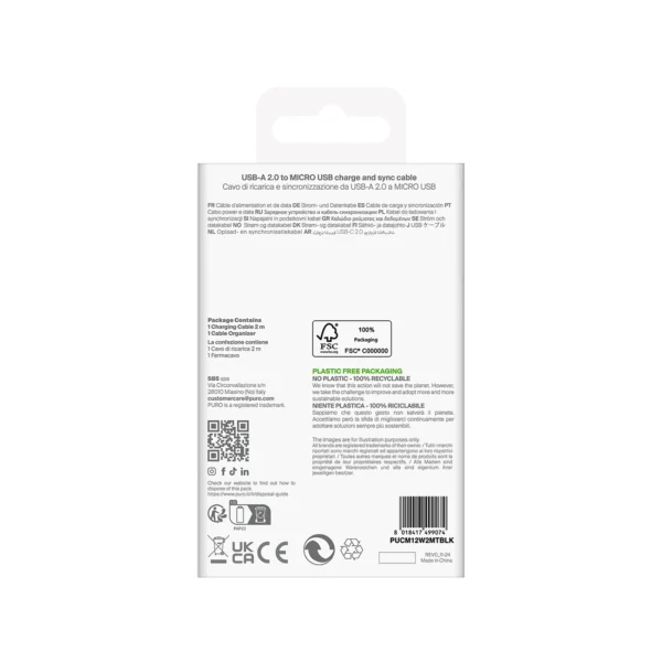 Key advantages of Puro 12W TPE USB-A – Micro USB 2m Cable – Black: