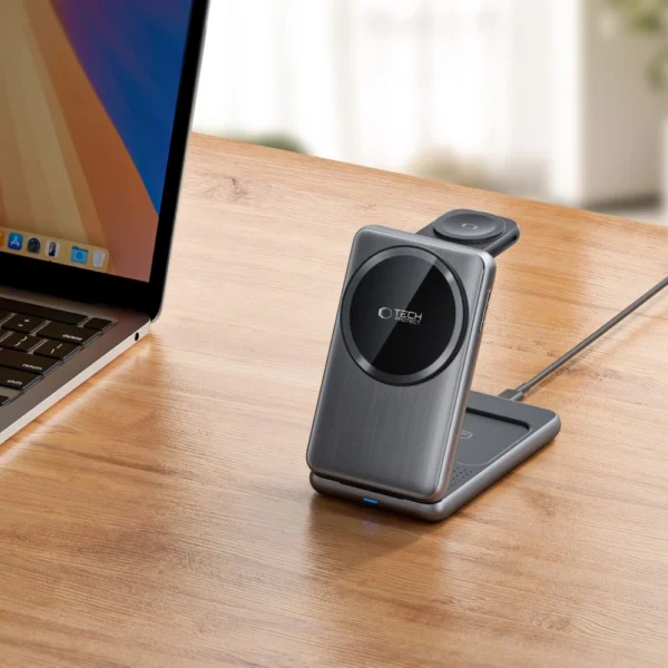 QI15W-A42 3in1 belaidis įkroviklis su MagSafe skirtas Apple Devices – pilkos spalvos