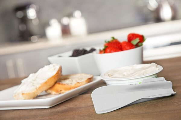 Scoop is a measuring spoon that easily converts into a spreading knife, helping you achieve perfect portions with effortless application. Scoop’s curved sides, allow you to scoop up your favorite spread, and then fold down flat so you can smear it evenly or even drop the ingredients right into a bowl. Measurement lines gauge teaspoon or tablespoon serving sizes so you can always scoop up just the right amount.