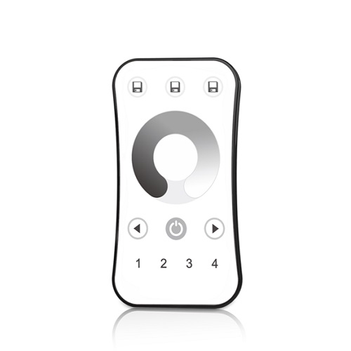 Nuotolinio valdymo RF pultelis LED juostų valdymui, vienos spalvos ryškumui nustatyti, 2.4GHz, 4 zonų, su sensoriniu ratuku, palaiko 3 scenarijų, 10 apšvietimo lygių valdymą.