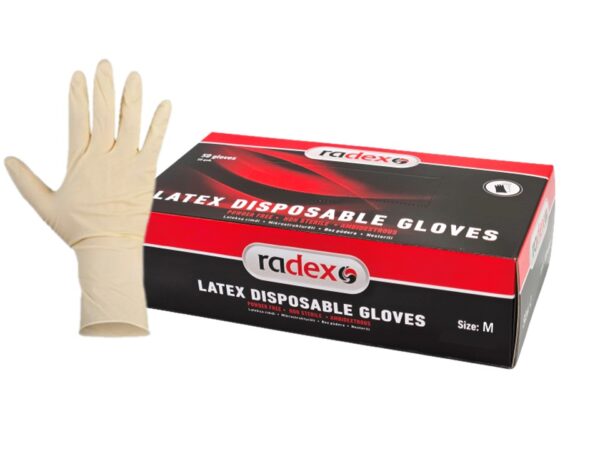 RADEX latekso vienkartinės pirštinės M (50 vnt.)