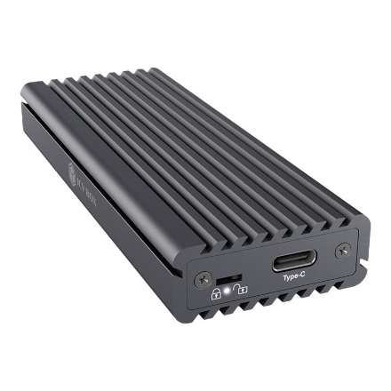 | Kitos savybės | External enclosure for 1x M.2 NVMe & SATA SSD with M-Key socket; Passive cooling High-grade aluminium in innovative cooling fin design; USB Type-C® USB 3.1 (Gen 2) Type-C® & Type-A interface; Write protection Activation of write protection via switch; LED for power and access |