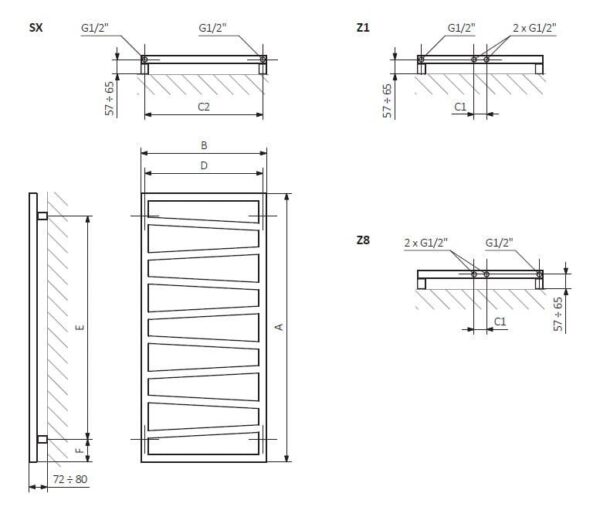 Tinka naudoti- Uždarose vandens šildymo sistemose. Prekės ženklas- Terma. Medžiaga- Plienas. Spalva- Juoda. Aukštis- 83.5 cm. Plotis- 50 cm. Galia- 300 W. Maksimalus slėgis- 10 Bar. Sienelės storis- 0.125 cm. Svoris- 10 kg. Sriegis- Vidinis, ½”. Privaloma garantija- 24 mėn. Papildoma informacija- Sienos storis: 1,25 mm. Vandeninį rankšluosčių džiovintuvą perdarant į elektrinį, negalima naudoti užpildymo skysčio, kurio sudėtyje yra glikolio..