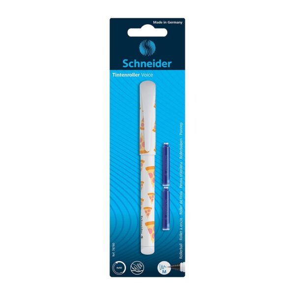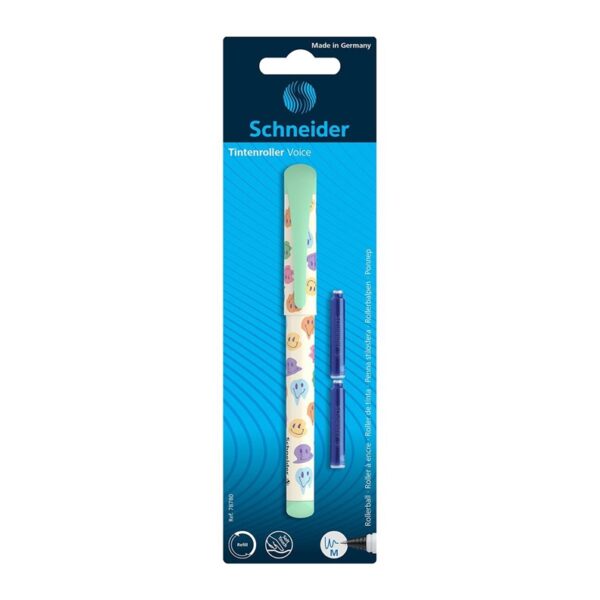 Prekės ženklas- Schneider. Modelis- VOICE . Artikulas- 78780. Spalva- Kelių galimų spalvų/dizainų, parenkama atsitiktine tvarka. Medžiaga- Plastikas. Rašalo spalva- Mėlyna. Parkeris tinkamas- Kairiarankiams, Dešiniarankiams. Su kapsulėmis komplekte- Taip. Garantija- 24 mėn.