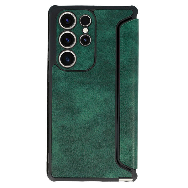 Razor Leather Book dėklas skirtas Samsung Galaxy S23 Plus dark žalios spalvos