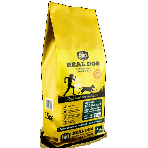 Real Dog Sensitive 15kg pašaras suaugusiems šunims su ėriena ir ryžiais