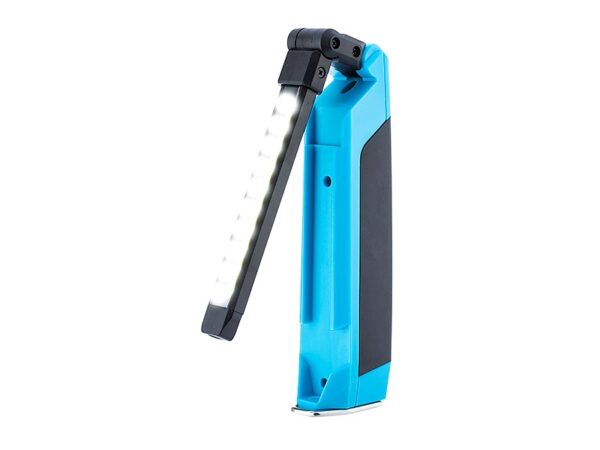 Rechargeable, foldable workshop lamp 5W 500 lm COB LED + 2W 150 lm LED, IK07, with clip and magnet