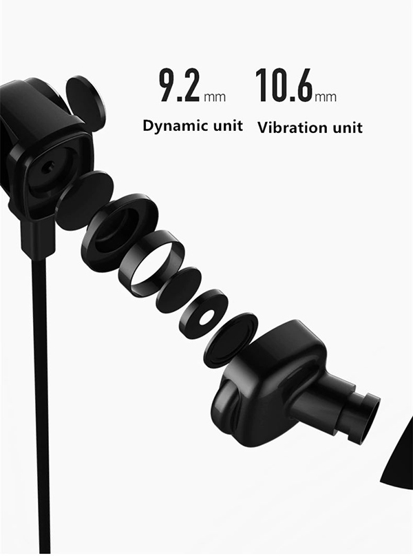 - Jednostka z ruchomą cewką 9,2 mm łączy się z jednostką wibracyjną 10,6 mm, zapewniając wspaniały efekt dźwiękowy