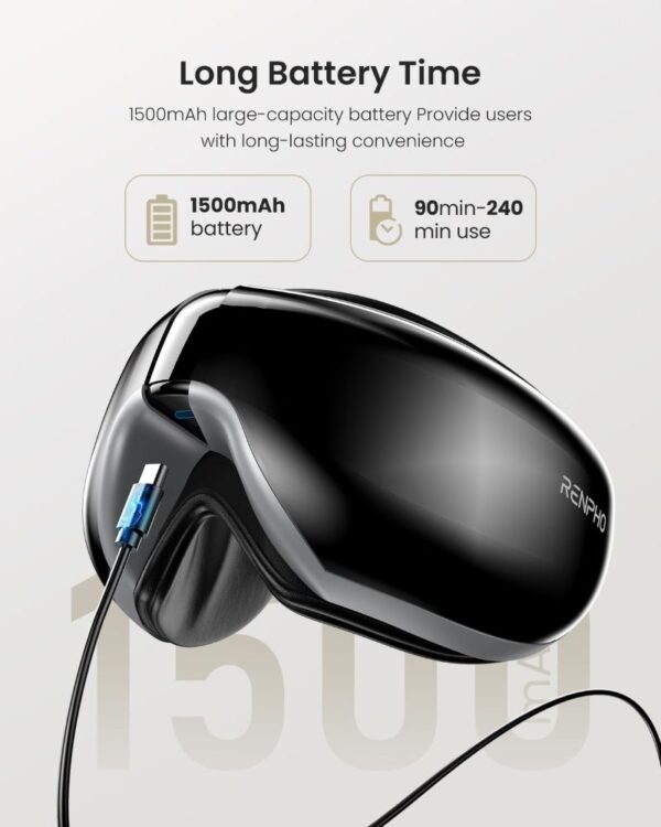 Atsipalaiduokite su RENPHO elektriniu akių masažuokliu, kuris sujungia šilumą, vėsinimą ir ritminį masažą pavargusioms akims, mažina stresą ir gerina miego kokybę. Sulankstomas, nešiojamas dizainas ir reguliuojamas galvos dirželis užtikrina patogumą namuose, biure ar kelionėje.