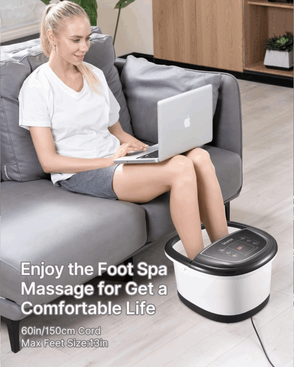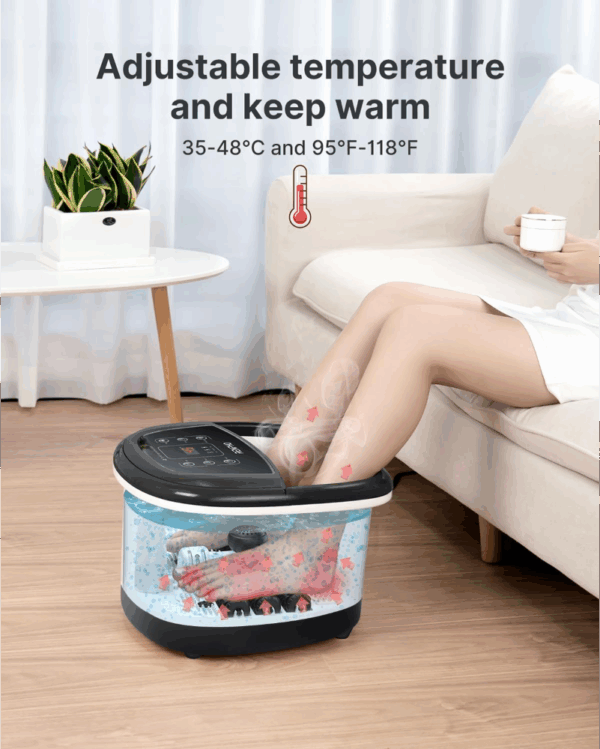 Ši elektrinė vonelė su masažo funkcija ir šildymu sukurta maksimaliam pėdų komfortui. Prietaisas itin rekomenduojamas vyresnio amžiaus žmonėms, sportininkams bei tiems, kurie susiduria su miego sutrikimais ar prasta pėdų kraujotaka.
