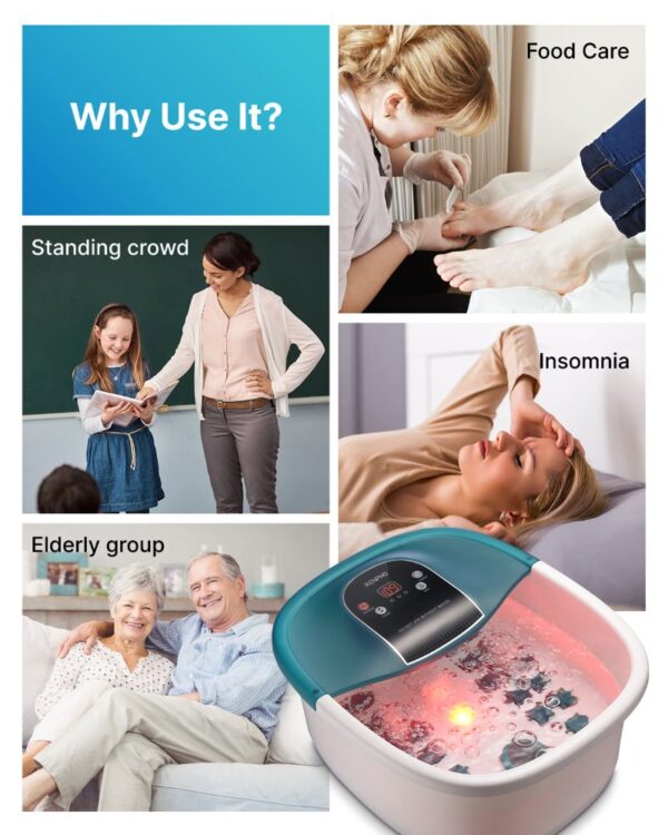 Šilumos valdymas: Mėgaukitės asmeniniu pėdų SPA šildantį masažu tiesiog namuose, pasirinkdami norimą temperatūrą nuo 35 °C iki 52 °C (nuo 95 °F iki 125,6 °F).