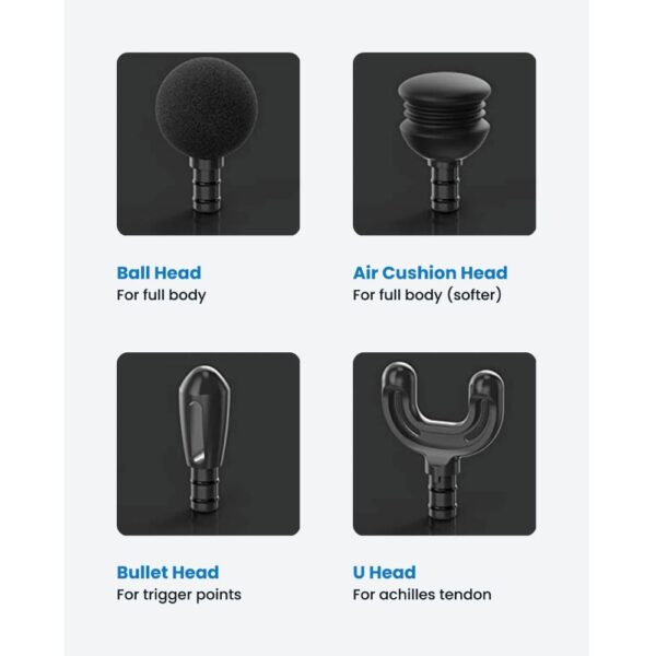 Parinkite masažą pagal savo poreikius, naudodami skirtingas galvutes, skirtas įvairioms raumenų grupėms.