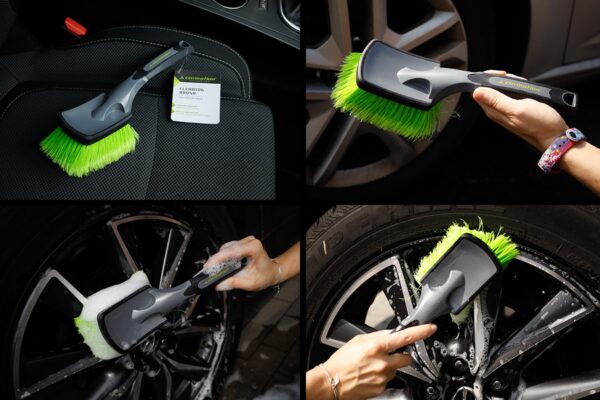 The brush is designed to clean car, motorcycle and bicycle wheels. It is light and ergonomic, it has dense polyester bristles with split ends. It perfectly cleans wheels and rims. The brush is resistant to washing chemicals and acid and alkaline preparations.