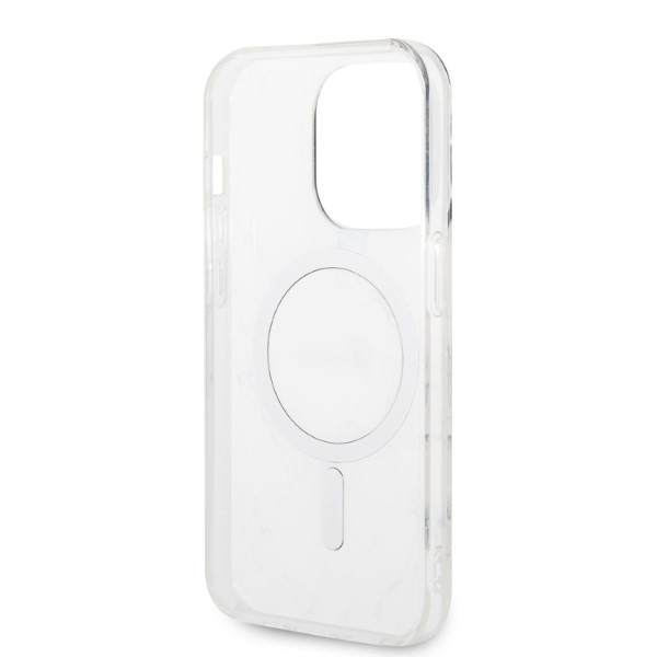 Unusual visual effects are provided by golden accessories in the form of a frame around the camera and the emblem of the Guess fashion house. Thanks to the use of gold accessories, the case gains a warmer character. For maximum user convenience, the case is equipped with a magnetic ring compatible with MagSafe technology allowing for fast, wireless charging.