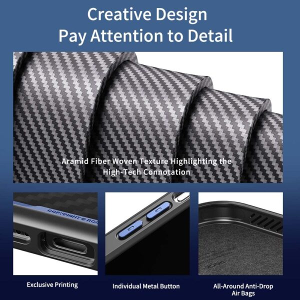 - Aramid Fiber Woven Texture – crafted from high-tech aramid fiber, this case combines high-end style with durability, adding a sophisticated, high-performance look to your device.