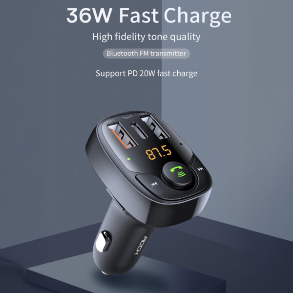 ROCK B301 FM Bluetooth Transmitter with 36W Charger | Advanced Connectivity and Fast Charging