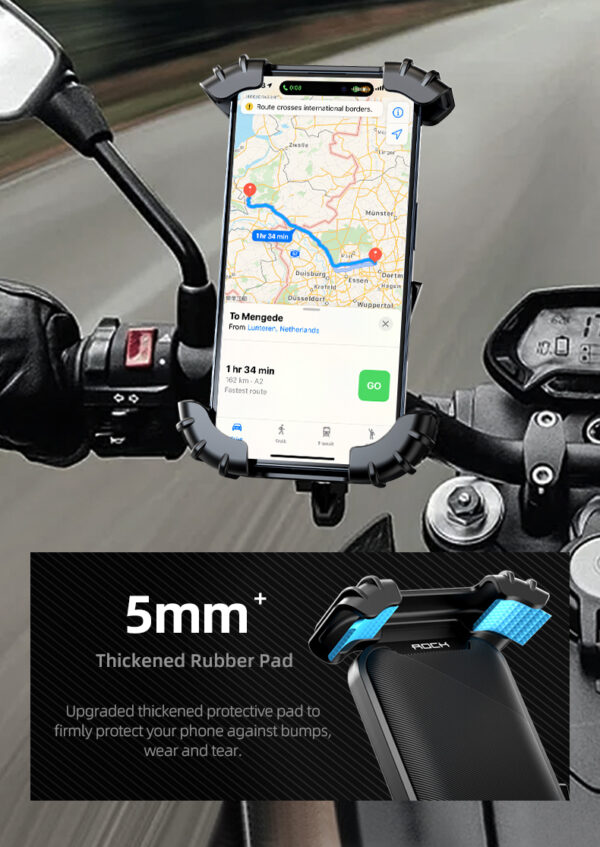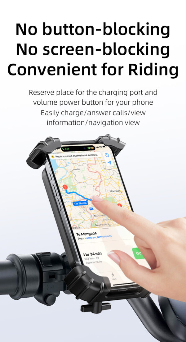 - Solidny uchwyt – Utrzymuje telefon stabilnie nawet na wyboistych drogach.
