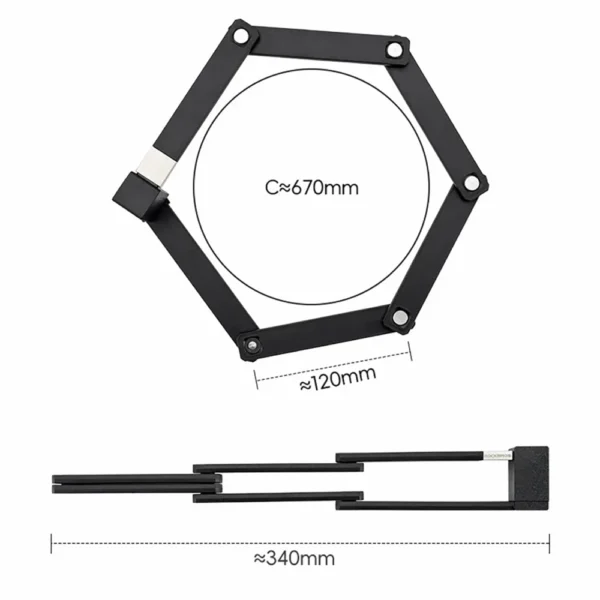 The Rockbros 32140003001 bicycle lock is a practical solution for those looking for robust bike protection in a compact package. Its accordion-style folding design allows for easy transport on the frame or under the saddle, and when unfolded, it offers a length of approximately 88-90 cm. Six zinc alloy segments ensure good mechanical resistance. It's a functional choice for everyday bike security in the city and on the road.
