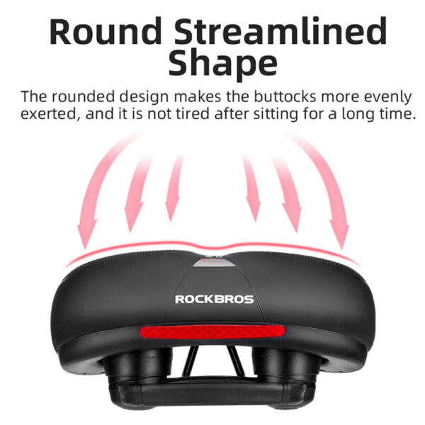 The Rockbros AQ-6090B bicycle saddle is a product designed for maximum comfort of use. Thanks to the durable coating on the outside and dense foam on the inside, it provides excellent comfort during long journeys. A large reflector on the back increases the cyclist's visibility on the road, which increases the level of safety, especially in low light conditions.