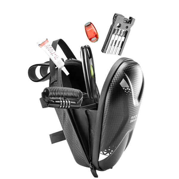 The Rockbros 3011006301 bag was made with moisture protection in mind. High-quality PU material and double glued zippers provide an effective barrier against water. This ensures that all stored items are safe, even when the weather is unpredictable.