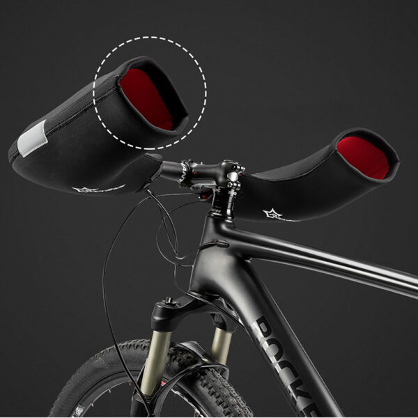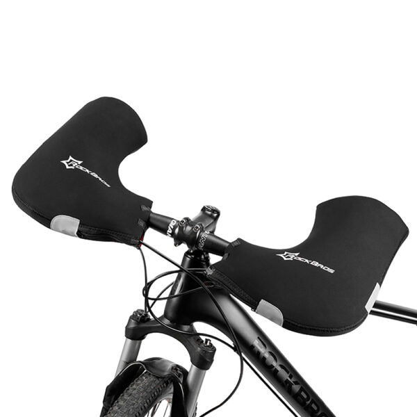 The Rockbros D16-B handlebar gloves help maintain comfort on cold and rainy days. Thick SBR neoprene material effectively protects your hands from wind, cold, and splashes. The YKK zipper and double Velcro closure provide convenient installation, and the gloves securely hold the handlebars while riding. The universal design is suitable for bicycles, scooters, motorcycles, and e-bikes. Reflective elements improve visibility after dark, increasing safety on the road.