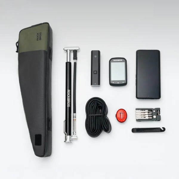 The Rockbros DB005 bike bag is a practical solution for those who want to keep their essentials close at hand while riding. Its compact 0.9L design conveniently stores a phone, keys, wallet, or small snacks without taking up much space on your bike. The lightweight and durable material is suitable for everyday use, and the waterproof finish helps protect the contents from splashes and dust. A large zipper allows for quick access to the interior, and a stable mounting system allows the bag to be securely attached to the frame. It's a convenient solution for city riding, touring, mountain biking, and road riding.