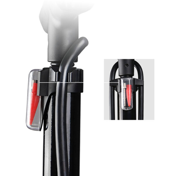 A clear pressure gauge located on the base allows for easy monitoring of air pressure during operation. This allows you to precisely inflate the tire to the manufacturer's recommended pressure.