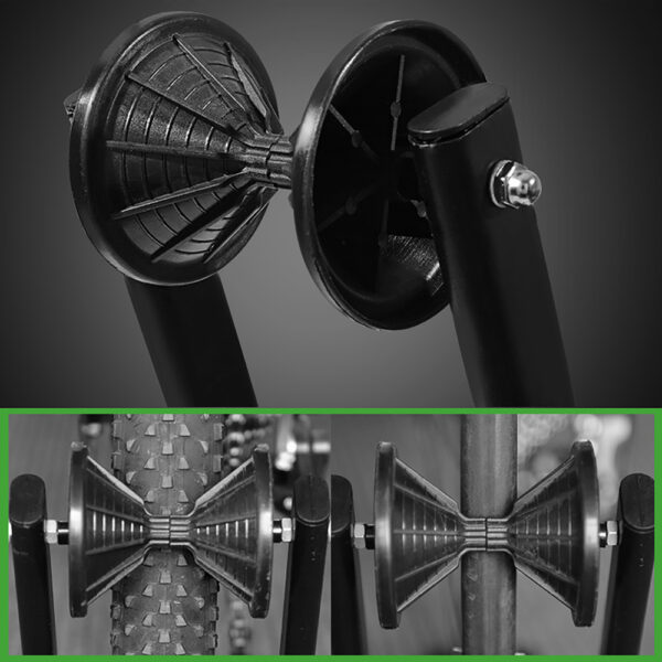 The stand allows you to insert the bike with both the front and rear wheels facing up. This makes it easy to use in a variety of situations and space configurations.
