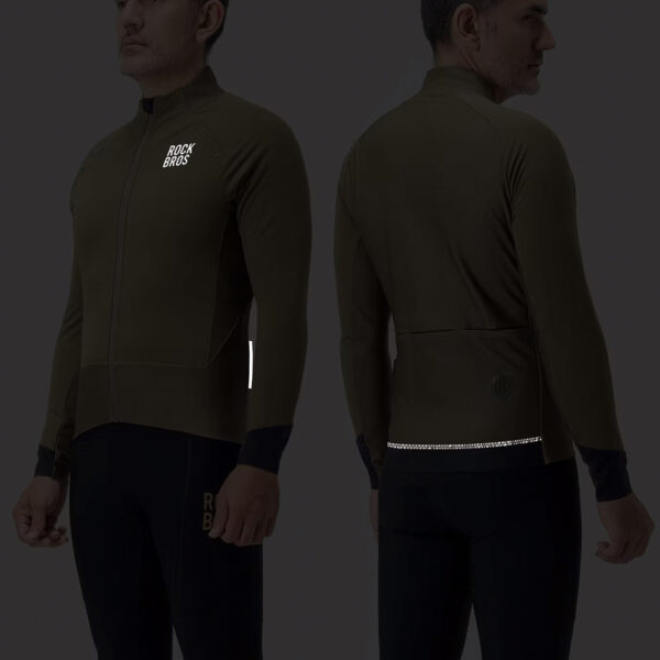 The Rockbros YDWT014 cycling jacket is designed for riding in colder conditions. Its two-layer construction combines stretch fabric with fleece insulation to help maintain warmth during cold-weather workouts. The material is breathable and moisture-wicking, ensuring the jacket remains comfortable even during intense rides. A fitted cut and elastic cuffs improve fit and reduce heat loss. Additional features, such as a YKK zipper and reflective details, enhance functionality and safety while riding.
