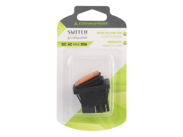Hermetic switch DC / AC max. 20A with yellow LED indicator. The indicator lights up in the ON position.