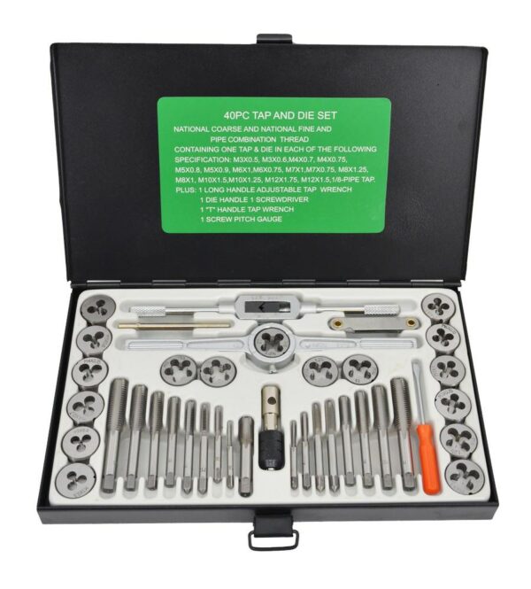 ROCKFORCE sriegikliai ir sriegpjovės, rinkinys 40 vnt.
