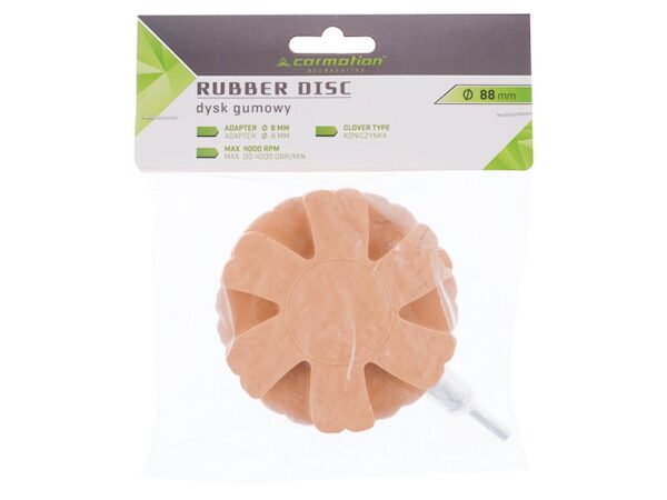 The disc removes residues of glue, foil, stickers or paint. Due to the rubber material, the use of the disc leaves no streaks on the elements and does not affect the cleaned surface.