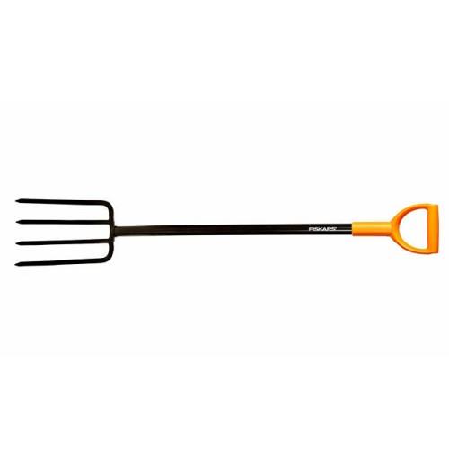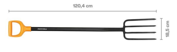 Prekės ženklas- Fiskars. Svoris- 1.786 kg. Ilgis- 1204 – 1204mm. Darbinis plotis- 18.5 cm. Spalva- Juoda, Oranžinė. Virbų skaičius- 4. Su kotu- Taip. Darbinės dalies medžiaga- Plienas. Šakių paskirtis- Universali. Privaloma garantija- 12 mėn. Garantija juridiniams asmenims- 24 mėn.