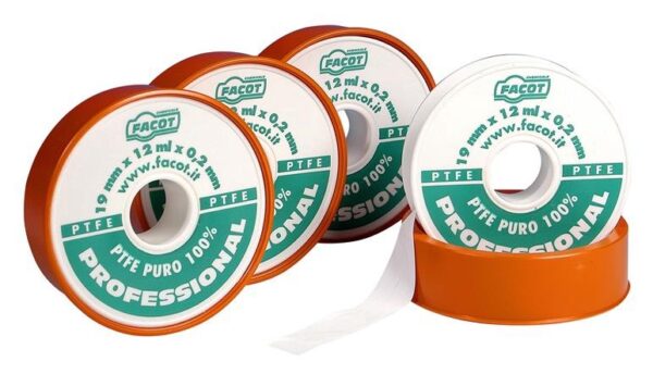 Prekės ženklas- Facot. Medžiaga- Teflonas. Spalva- Balta. Juostos paskirtis- Hidraulinei įrangai. Ilgis- 12 m. Plotis- 19 mm. Storis- 0.2 mm. Atsparumas temperatūrai- -60 – 260°C. Limpanti – Ne.