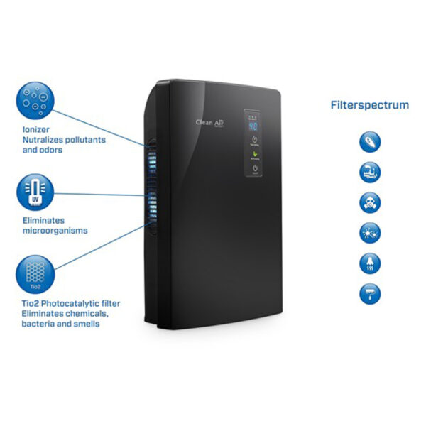 Optimalus patalpų drėgmės lygis (40–60 %) yra būtinas gerai savijautai ir sveikatai. Per didelė drėgmė gali sukelti pelėsio atsiradimą, nemalonius kvapus ir kvėpavimo problemas. Clean Air CA-703B sausintuvas su pažangia 3 pakopų filtravimo technologija (jonizatorius, UV šviesa ir fotokatalitinis filtras) ne tik pašalina drėgmę, bet ir valo orą nuo bakterijų, virusų bei mikroorganizmų.