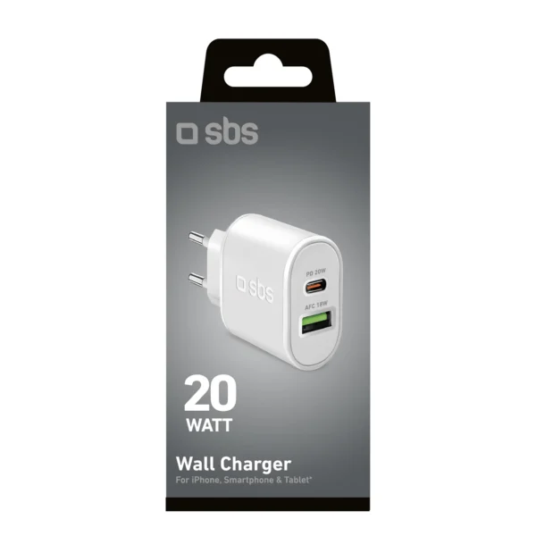 SBS TETRPD20W 20W USB-A USB-C Wall Charger with Power Delivery – White