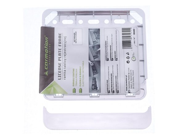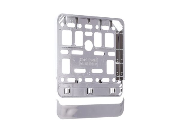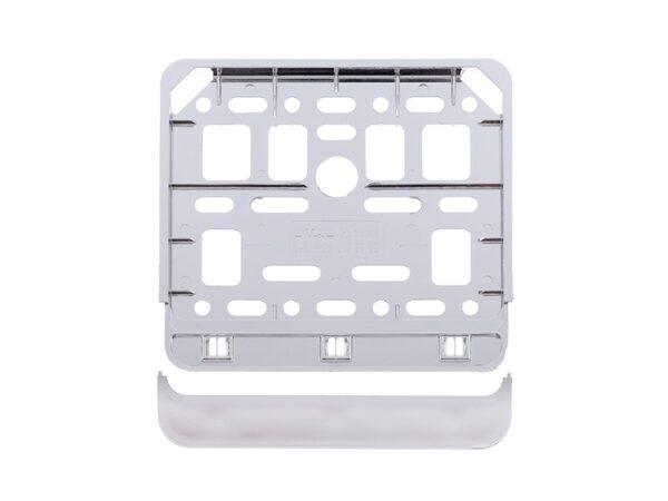 Frame allows a stable mounting of the license plate. The frame is provided with mounting holes thanks to which there is no need to drill into the car body. Set includes a snap strip that protects the board against falling out. Made of high-quality plastic that is resistant to the harmful effects of weather conditions. The surface has been covered with chrome, due to which Frame is smooth and shiny. Frame can be assembled / disassembled many times, it fits standard plates in motorcycles and scooters.