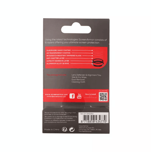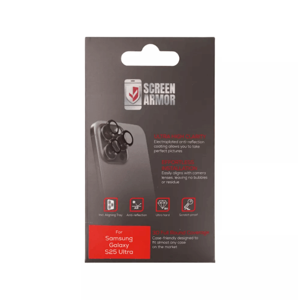 Apsaugokite vieną jautriausių savo telefono dalių – kamerą! ScreenArmor Lens Defender – tai patikima grūdinto stiklo apsauga, sukurta apsaugoti jūsų telefono objektyvus nuo įbrėžimų, smūgių, dulkių bei pirštų atspaudų. Su juo jūsų nuotraukos ir vaizdo įrašai išliks krištolo skaidrumo, o įrenginys – nepriekaištingos būklės.