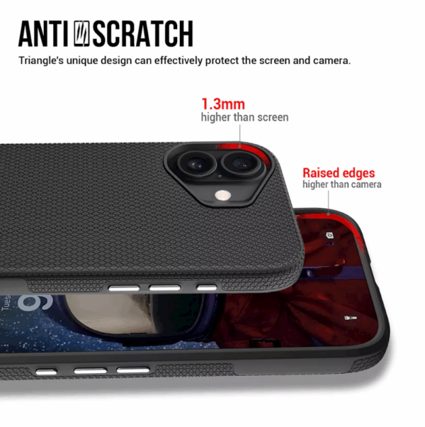 🤲 Patogus sukibimas – unikali „Triangle Surface Grid“ tekstūra neleidžia telefonui slysti iš rankos.