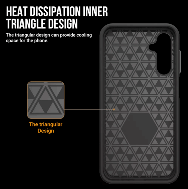 🤲 Patogus sukibimas – unikali „Triangle Surface Grid“ tekstūra neleidžia telefonui slysti iš rankos.