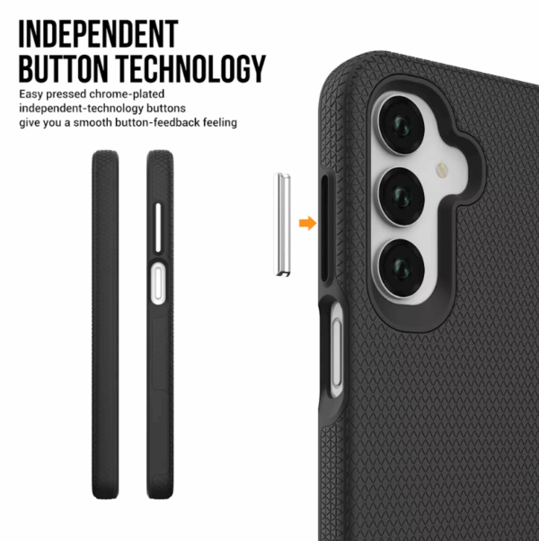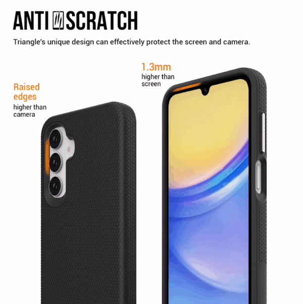 Pagamintas iš dviejų pažangių medžiagų – smūgiams atsparaus TPU ir įbrėžimams atsparaus polikarbonato (PC) – šis dėklas apsaugo nuo kritimų, smūgių ir kasdienio nusidėvėjimo. Pakelti kraštai dar labiau apsaugo ekraną nuo tiesioginių smūgių.