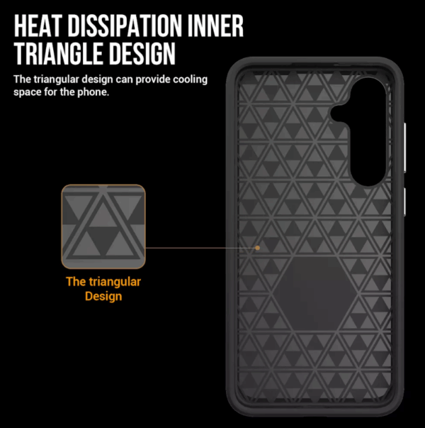 🤲 Patogus sukibimas – unikali „Triangle Surface Grid“ tekstūra neleidžia telefonui slysti iš rankos.