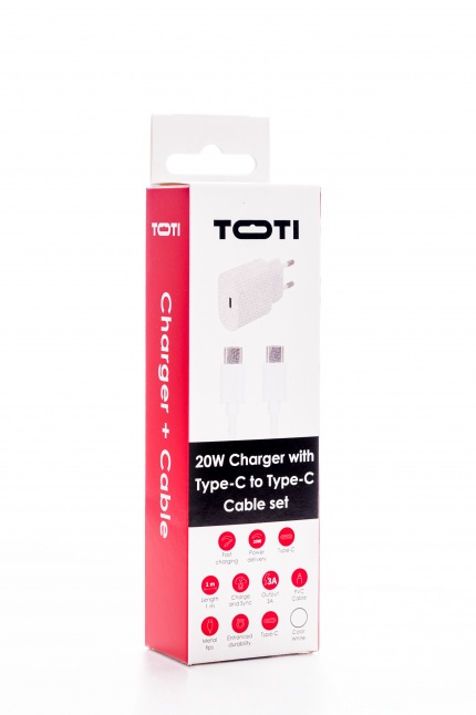SEEK TOTI 20W Type-C PD sieninis greitasis įkroviklis su Type-C į Type-C, 1 m PVC duomenų kabeliu 3A, baltas